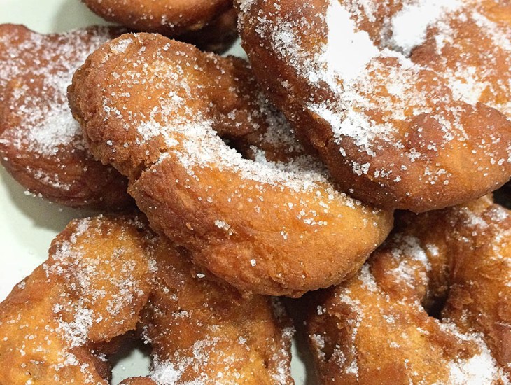 No es una receta complicada solo es un poco mas elaborada al tener que preparar la masa el dia de antes. Con mi familia nos reunimos todos la noche de antes y juntos preparamos la masa, al mediodia del dia siguiente nos volvemos a juntar para formar los buñuelos, freiros y lo mejor… Comernoslos!!!