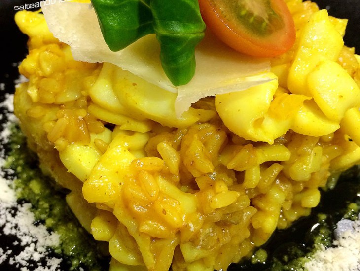 Como no tenía mucho tiempo para cocinar, he tomado el camino rápido, resultado: Un arroz con curry, sépia y parmesano que no dejaría de comer!!!!