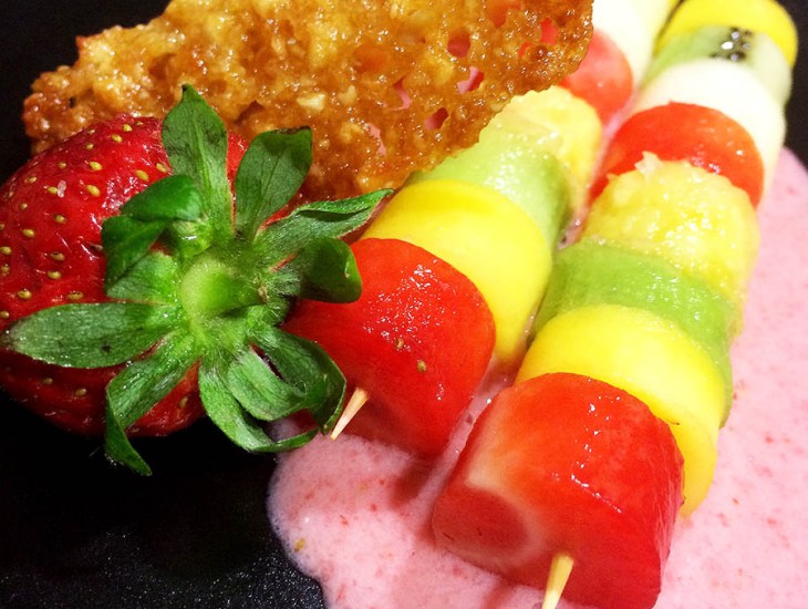 Para la brocheta podéis poner cualquier fruta de temporada, yo en este he puesto: