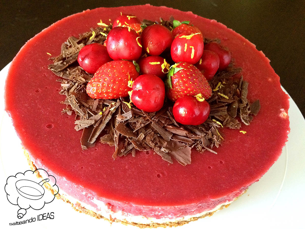 cheesecake_limon 17 mayo, 2015 Cheesecake de limón, con base de chocolate y gelatina de fresas y cerezas. 1200 × 900