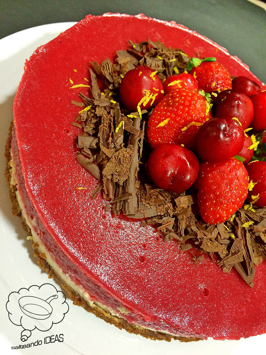 cheesecake_limon3 17 mayo, 2015 Cheesecake de limón, con base de chocolate y gelatina de fresas y cerezas. 900 × 1200