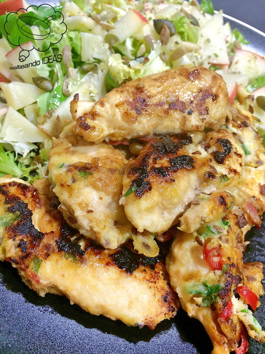Yo para acompañar el pollo me he hecho una ensalada de lechuga con manzana y queso seco.