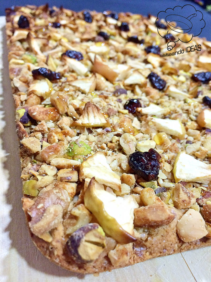 350 g de frutos secos (yo he puesto, mezcla de frutos secos al horno además, pistachos y nueces)