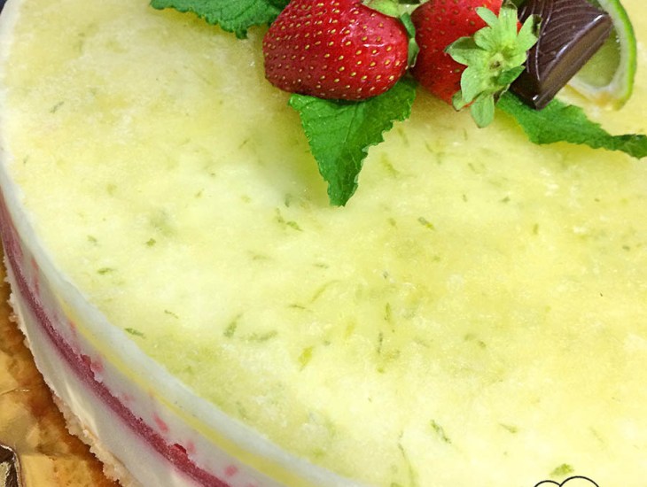 Preparé esta tarta para celebrar el cumpleaños de mi cuñado y el mío y como aquí está haciendo un calor insoportable, que mejor que una tarta helada y con sabores más bien refrescantes como la lima o la piña.