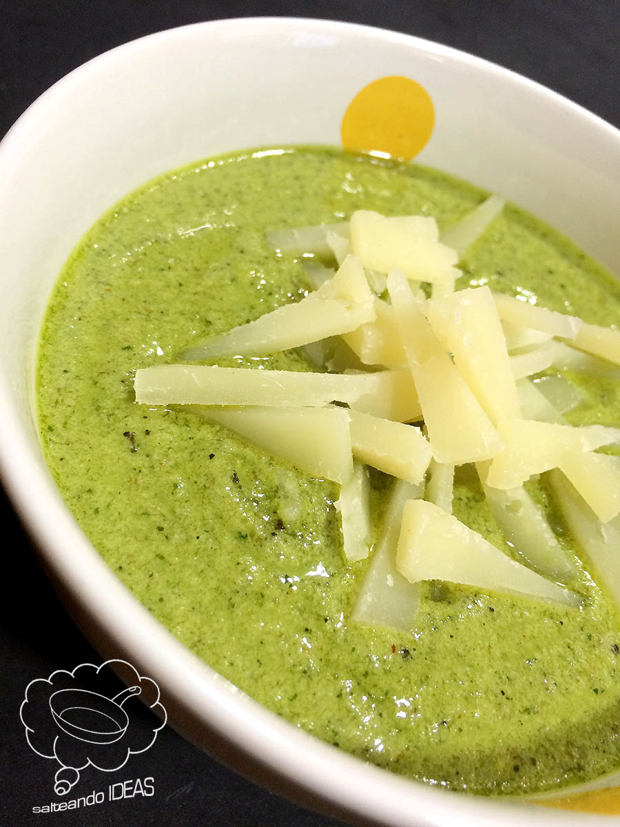 Seguidamente echamos dentro el agua y el parmesano, seguimos triturando.