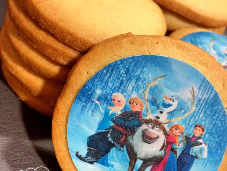 Hoy hay una fiesta que celebrar así que cogí los dibujos que más le gustan a la peque «Frozen» y compré unas láminas de papel de azúcar para poder decorar las galletas.