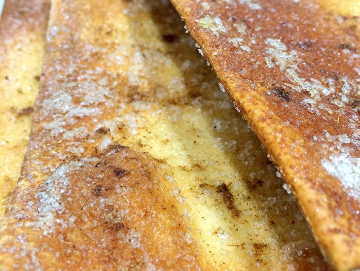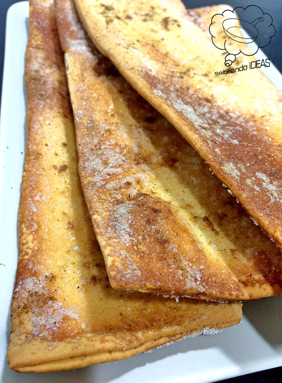Este dulce es muy tradicional aquí en Cataluña, se trata de una masa elaborada con leche y mantequilla, de ella se hacen porciones y se extienden en forma de tiras finas para que al hornearlas queden crujientes. Encima se le añade bastante azúcar y un poco de licor de anís, es lo que le da el toque especial y característico.