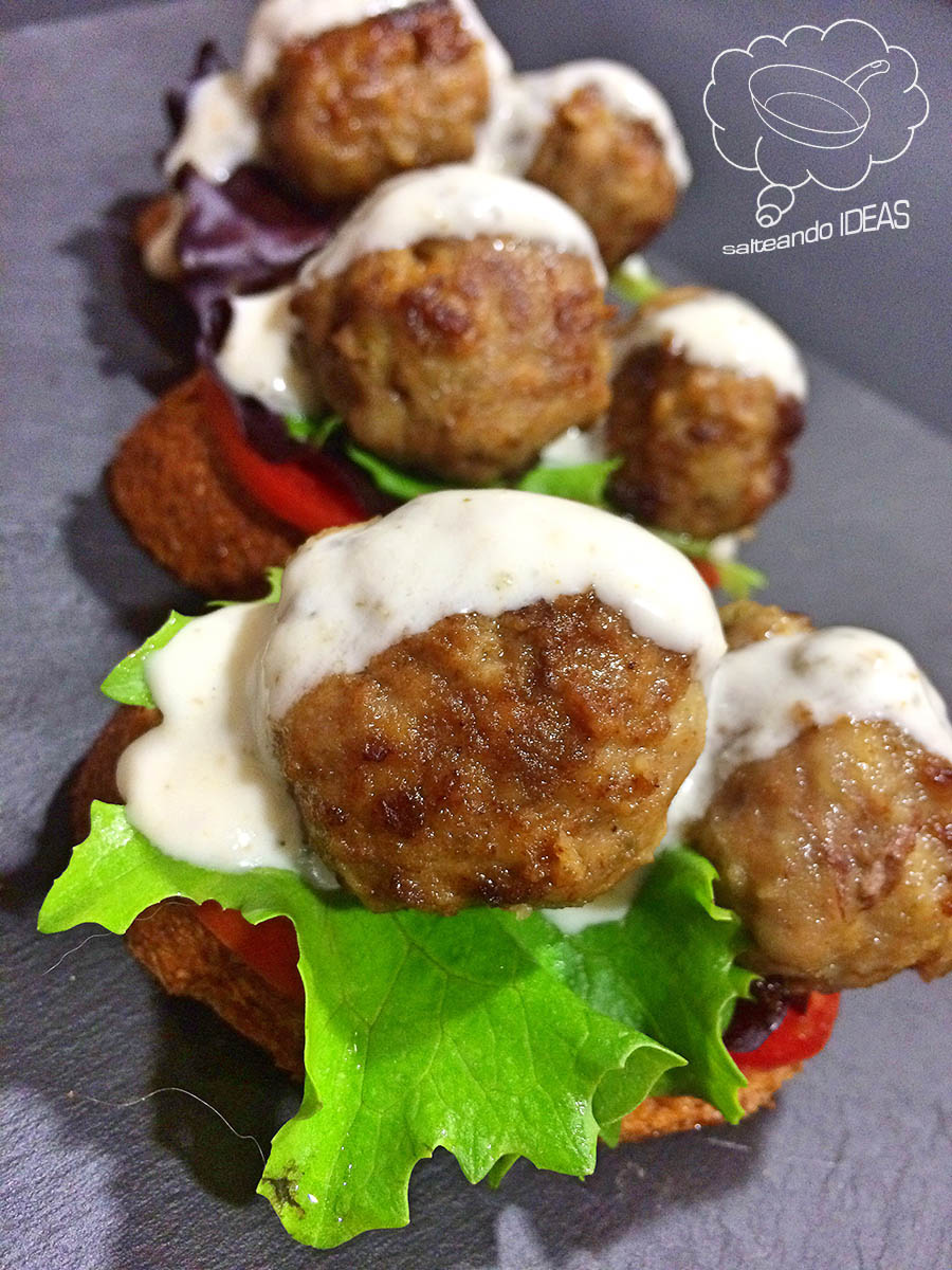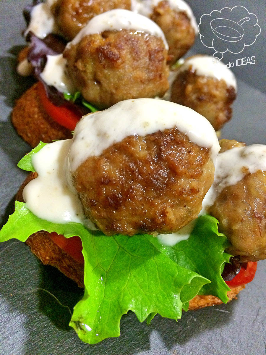 En cada una de ellas ponemos 2 rebanadas de tomate de untar, un poco de las dos lechugas, las dos albóndigas y la salsa de yogur por encima, ¿fácil verdad? La verdad es que son muy muy buenas y es otra manera de poder comer un plato tan típico turco.