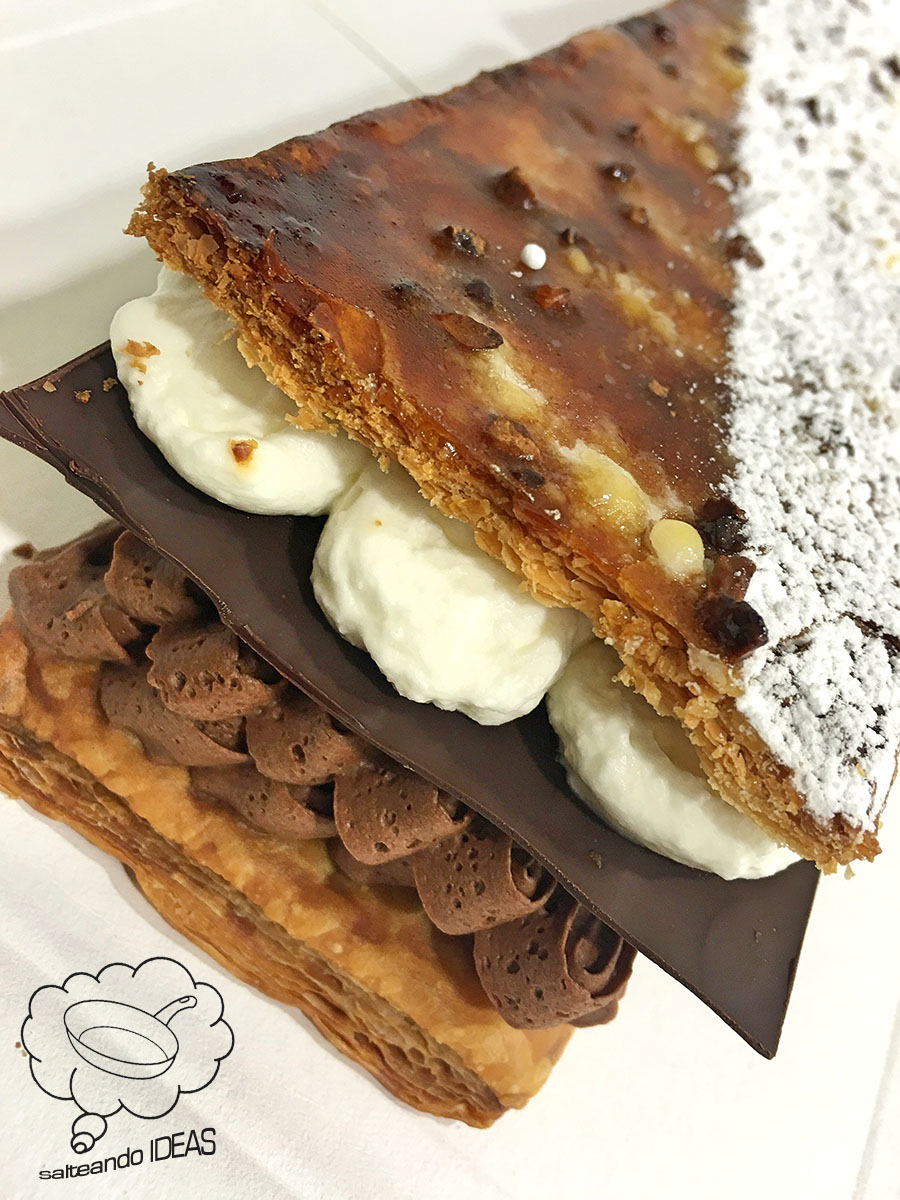 Pero el toque más personal que ha encantado ha sido la capa caramelizada de encima del mil hojas, simplemente queda impresionante! Solo tenéis que tener cuidado al cortarlo porque al estar caramelizado cuesta más para cortar, que hicimos? pues separé un momento la capa de encima, la partí en los trozos que tocaba, corte el milhojas normal y luego fui cubriendo las porciones con la capa caramelizada.