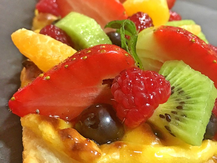 Banda de hojaldre con crema y frutas
