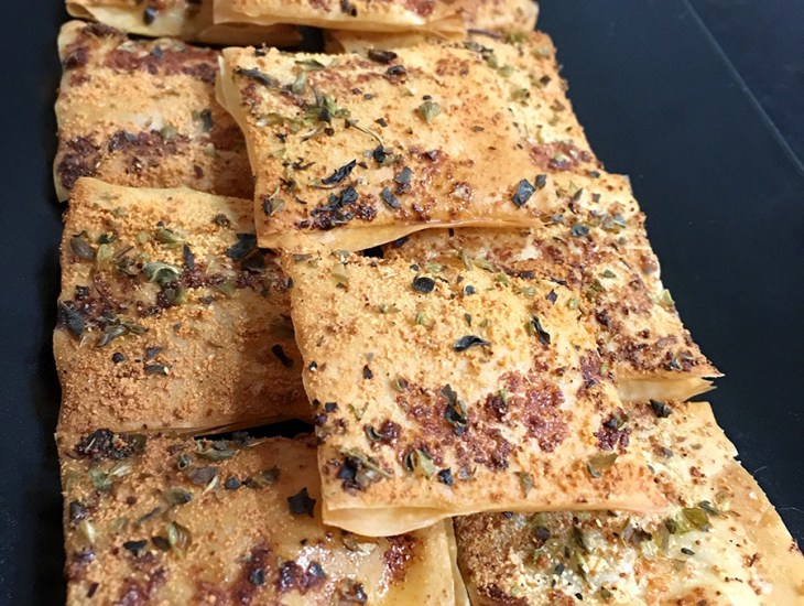 Vamos a por esta receta tan fácil y más que resultona! Primero extendemos una de las hojas de pasta filo y la untamos con mantequilla con la ayuda de un pincel, luego ponemos otra hoja de pasta filo y repetimos el proceso, así hasta la última. La última también la untaremos con mantequilla por encima.