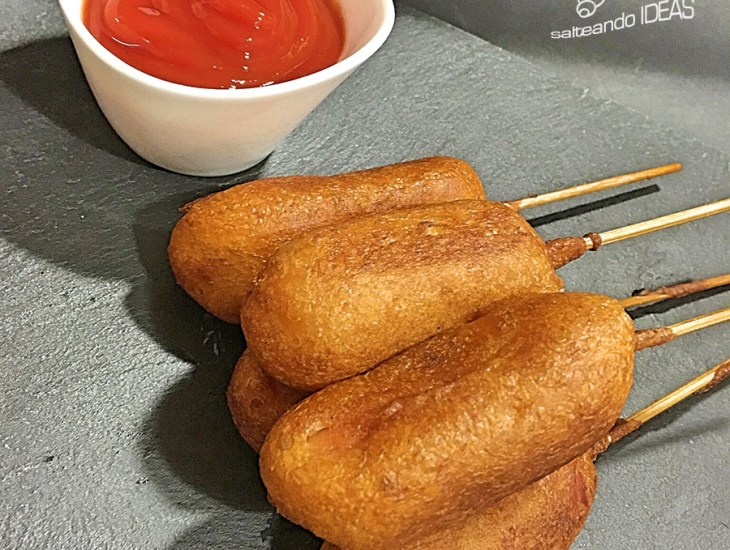 Los corn dogs o perritos empanados, son un tipo de comida callejera muy habitual en México, Estados Unidos, Canadá y Australia. Se trata de un salchicha ensartada en una brocheta y rodeada de un delicioso y esponjoso rebozado.