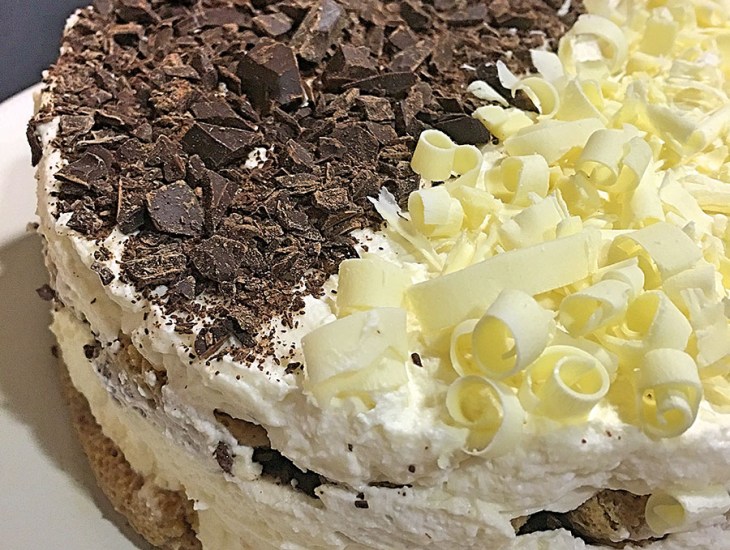 Os presento mi tiramisú sin huevo y con dos chocolates, blanco y negro.