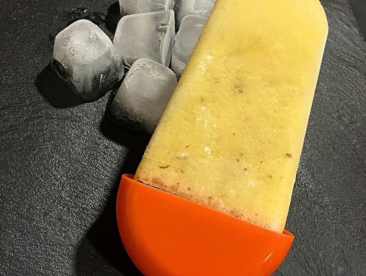Un polo con fruta del tiempo y un tique especial. Podéis combinar diferentes frutas yo esta vez he escogido el melocotón y el melón.