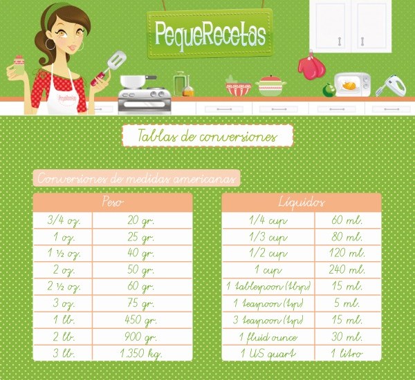 Ah! Y también una ayuda en conversión de recetas americanas, de onzas a gramos! Van a ir genial!