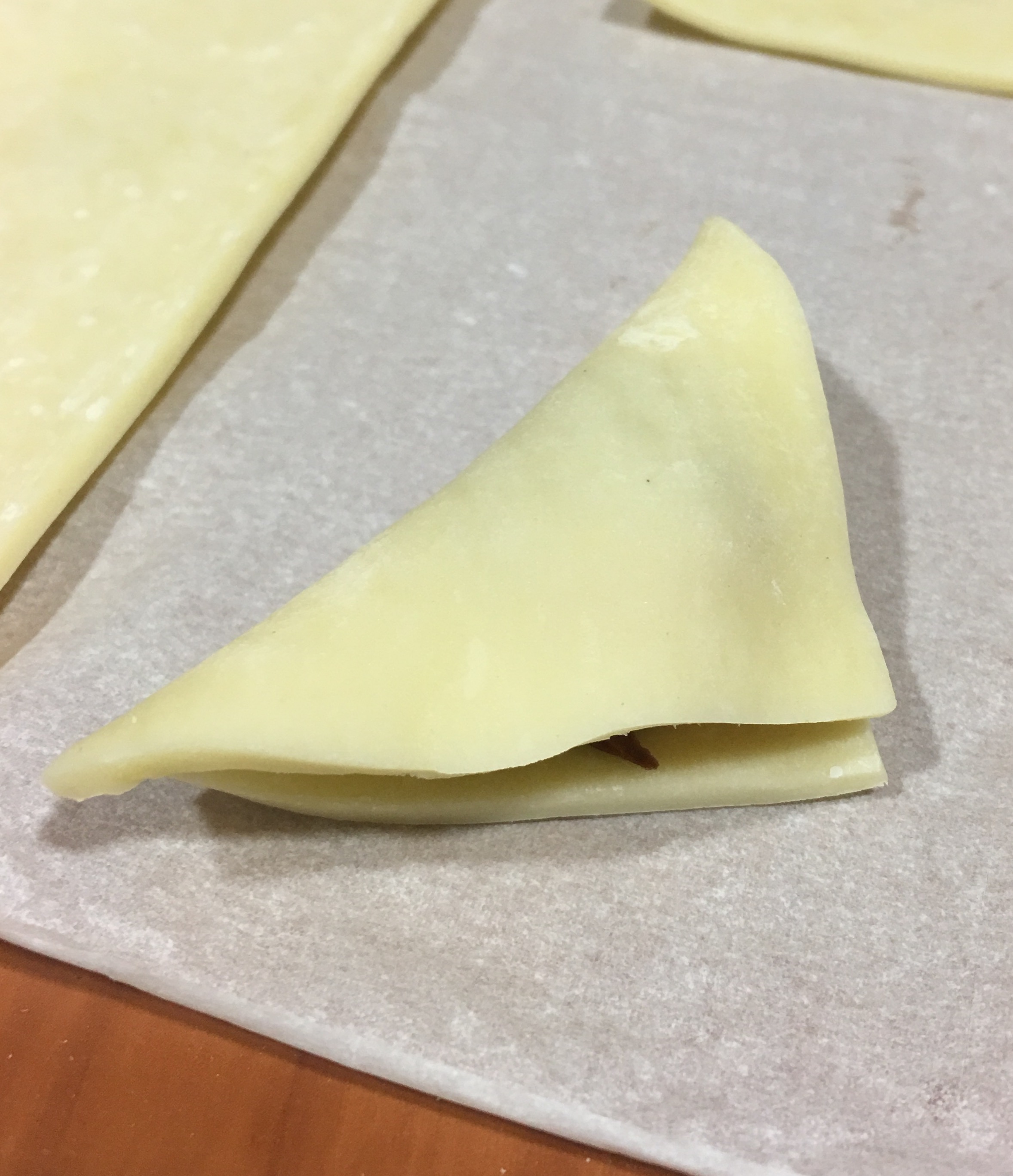 Tortellini de hojaldre rellenos de chocolate y fresa