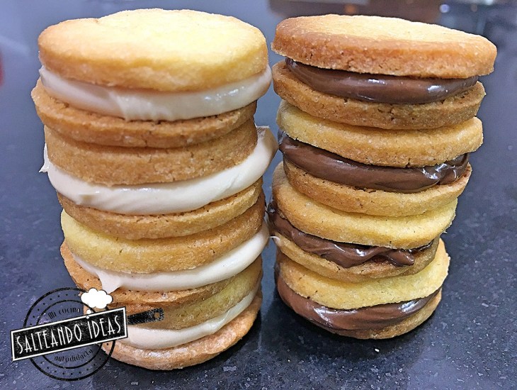 Son unas galletas con mantequilla y con una ligera textura azucarada que enamora al paladar. Son muy faciles de hacer y podéis rellenarlas de lo que más os guste, yo he obtado por mi vicio, Nocilla o Nutella, y para los que no les gusta el chocolate negro ahí van unas con chocolate blanco.