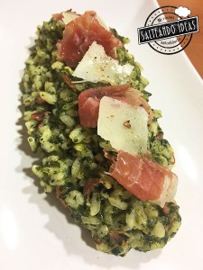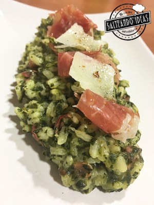 Os estaréis preguntando porqué le he puesto este título a un risotto de espinacas, la respuesta es que le he dado este nombre por dos grandes ingredientes que lleva y aquí gustan mucho, ¿sabéis cuales son? El jamón ibérico o bellota y el queso de oveja viejo.