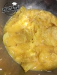Cuando tenemos los huevos batidos incorporamos las patatas chips, las removemos y las dejamos un minuto antes de verterlo todo en la sartén.