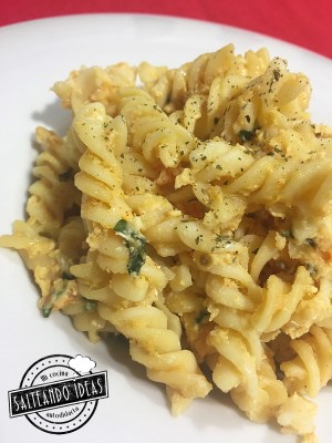 Como amante de la pasta me gusta probar mil recetas con ella, algunas más complicadas que otras pero algunas de ellas salen en momentos de prisa, de no tener suficiente tiempo como para poder entretenerte, entonces es cuando abres la nevera y ves que tienes pasta hervida y se te ocurre una receta así. Simple, sencilla pero a la vez un plato saludable con carbohidratos y proteínas.