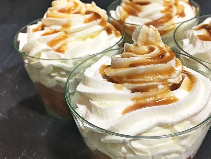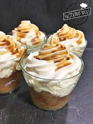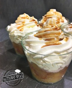 Para terminar este postre verteremos un poco de esta salsa por encima de la nata de cada vasito y a comer!
