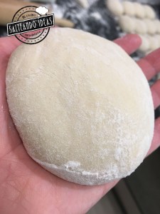 Una vez obtenemos la masa que deseamos la sacamos del bol con la ayuda de un poco de harina para despegarla bien y la amasamos un poco para darle una forma de bola bien redonda.