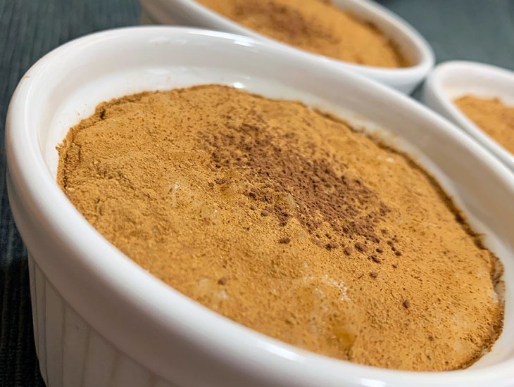 Antes de disponer el arroz en tarros o platos hondos, sacamos las pieles de limón, repartimos el arroz y finalmente lo espolvoreamos con canela al gusto y un poco de cacao en polvo por encima.