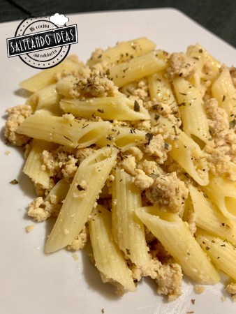 Empezamos ponienzd una olla en el fuego para hervir la pasta. En el momento que empiece a hervir hechamos la pasta que hayamos elegido (yo he puesto macarrones) y la dejamos «alldente», depende de la marca puede variar entre 8-10 minutos. Cuando esté lista, la escurrimos con otro cuenco debajo para guardar el agua con la que ha hervido, reservamos.