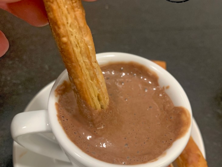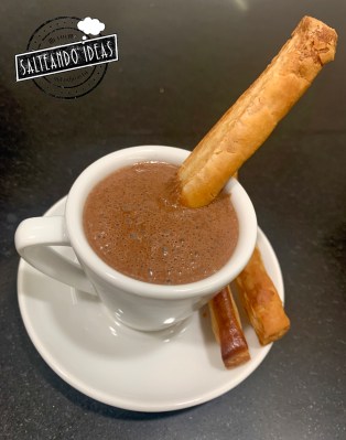 Para acompañar el chocolate, si tenéis pasta de hojaldre, cortad tirad y las horenais a 200 grados para que se tosten.