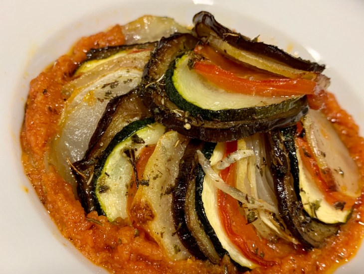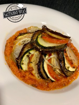 Os os traigo una receta de lo mas típica de la cocina francesa, se trata de «Ratatouille», un plato a base de verduras. Podríamos decir que es como un pisto de la gastronomía española, solo que la presentación y las hierbas aromáticas lo diferencian.