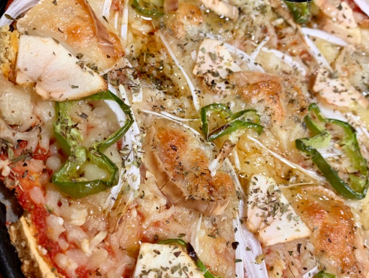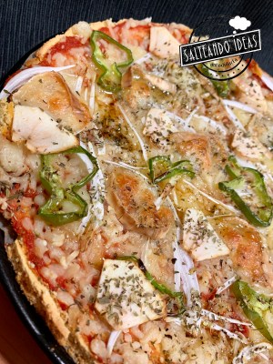 Esta base de pizza está inspirada en esta crêppe aunque un poco más gruesa para que salga crujiente. Eso si! No penséis que tiene un sabor parecido a la pizza de toda la vida, para nada, solo en los ingredientes de encima pero es una experiencia que tenéis que probar.
