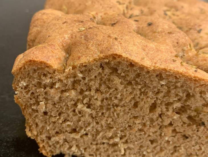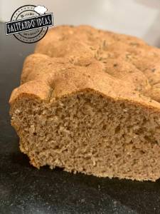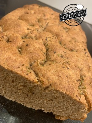 Absorve más el aceite que la harina de trigo. Yo solo le he puesto orégano por encima pero vosotros la podéis variar fácilmente, con verduras, frutos secos o jamón etc…