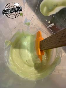 En un vaso batidor ponemos el yogur, el aguacate troceado sin piel ni hueso. Mientras batimos vamos añadiendo el aceite poco a poco para emulsionar.