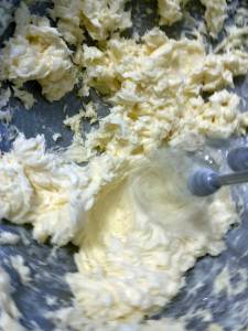 Empezamos elaborando las galletas de mantequilla, para ello primero debemos batir la mantequilla sola hasta que coja un color blanquecino. Bajamos la mantequilla de las paredes y le añadimos el azúcar glass y batimos hasta que se integre. Seguidamente incorporamos la esencia de vainilla y el huevo.