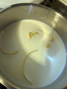 2 tiras de piel de limón 40 gr de maizena o midó