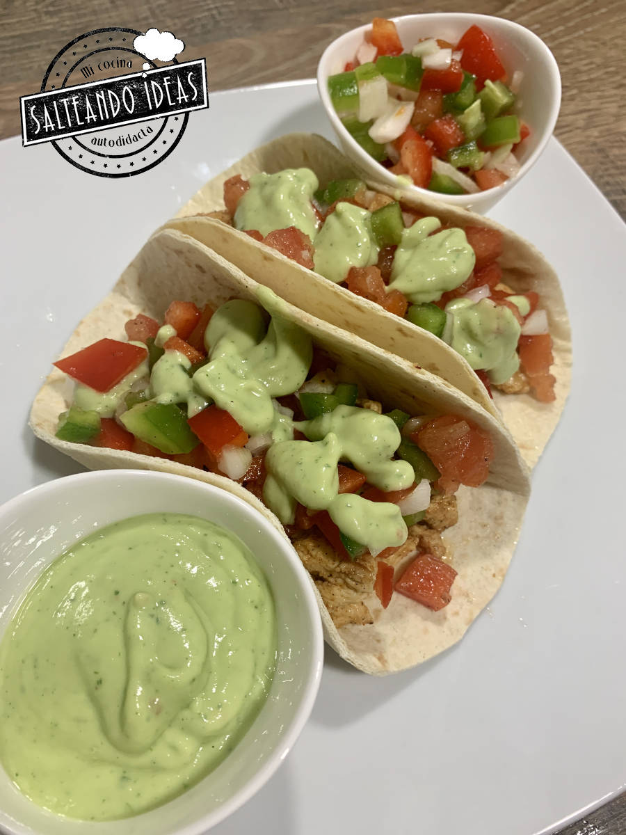 Tacos de pollo con salsa de cilantro y yogur