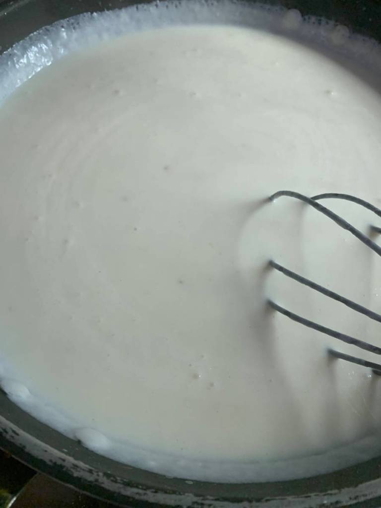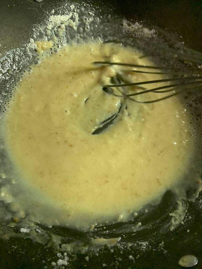 En una sartén ponemos la mantequilla que se derrita, luego incorporamos la cebolla y dejamos que se dore ligeramente. A continuación añadimos la harina y dejamos que se tueste un poco. Echamos poco a poco la leche, removiendo todo el rato suavemente para que no se hagan grumos y nos quede una textura fina.