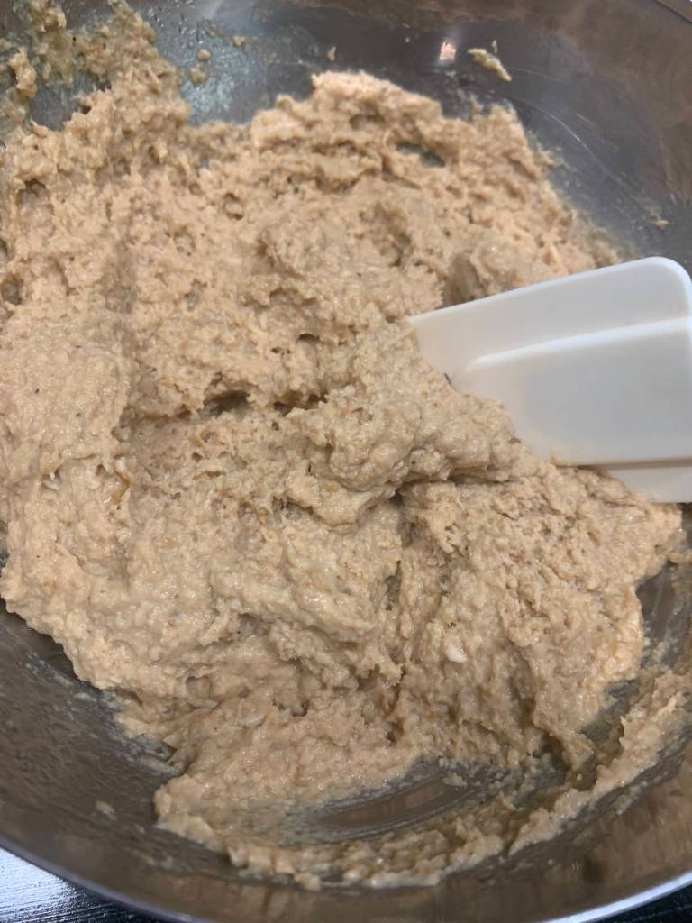 Trituramos los ingredientes sólidos con un triturador de alimentos, para que quede un relleno muy picado y suave. Cuando lo tenemos todo triturado agregamos el líquido que habíamos reservado y lo mezclamos muy bien todo, rectificamos de sal si se necesita. Reservamos.
