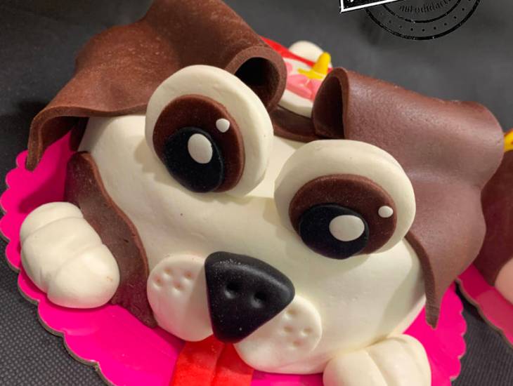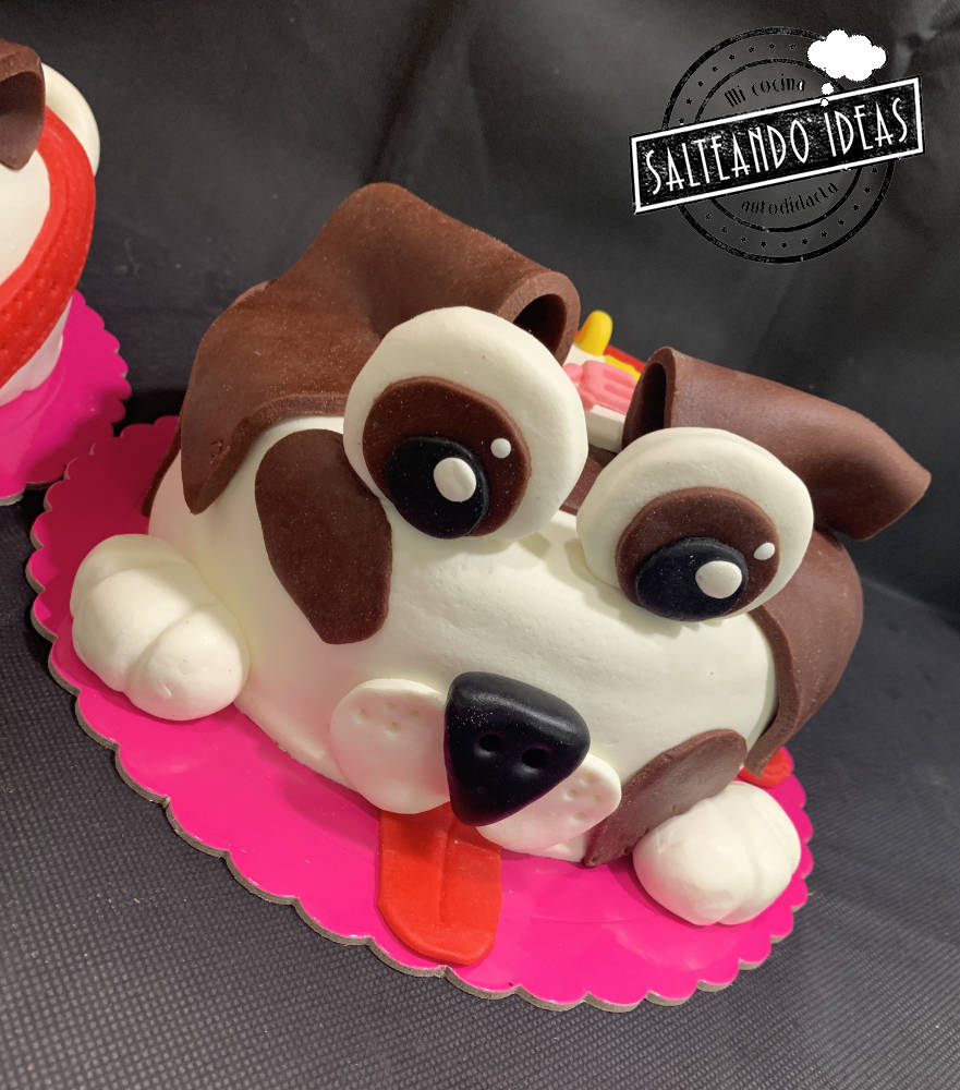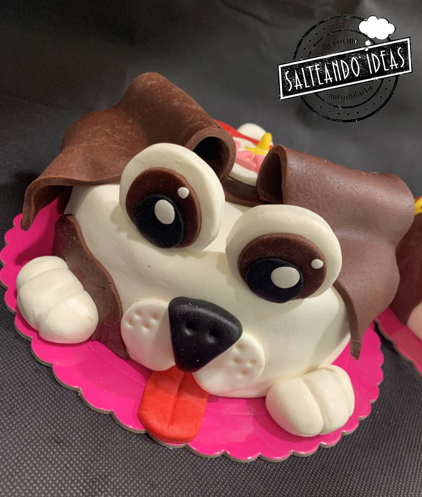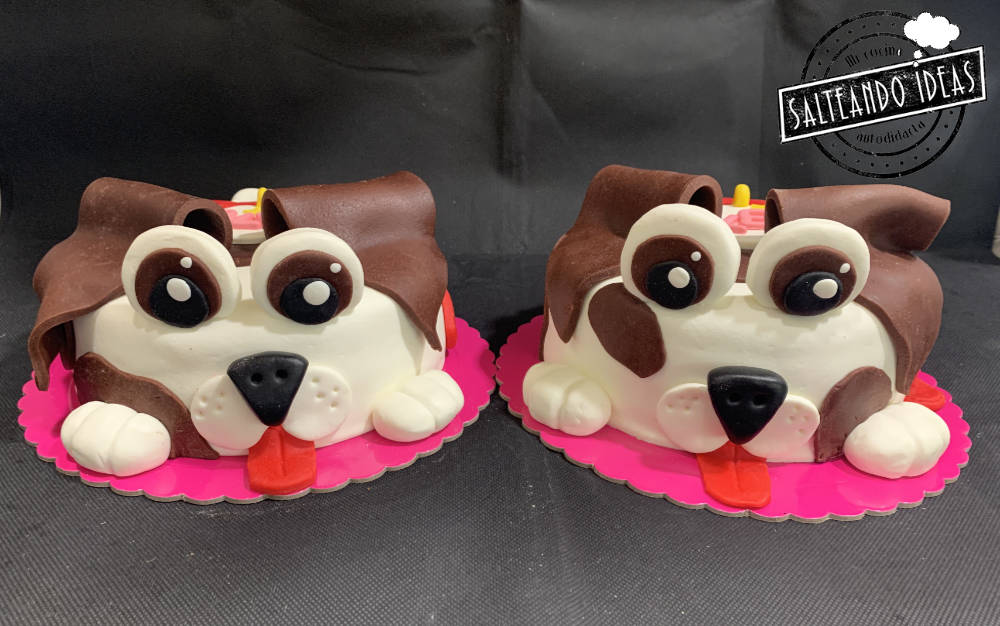 Esta tarta se la hice a mi hija pequeña para su tercer cumpleaños. Ella quería un perrito y al pensarla opté para hacerle dos. Ya veis que el diseño no es tan complicado, pero si hacer bien las manchas y los ojos de los perros salen muy monos y más para niños como los de su edad.
