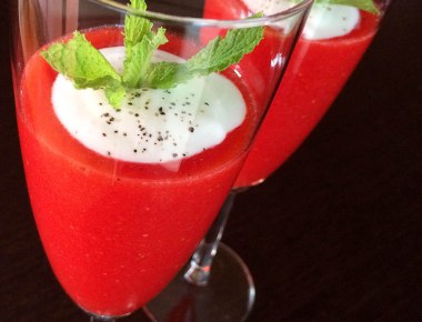 Gazpacho de fresas y cerezas (estas en almíbar)